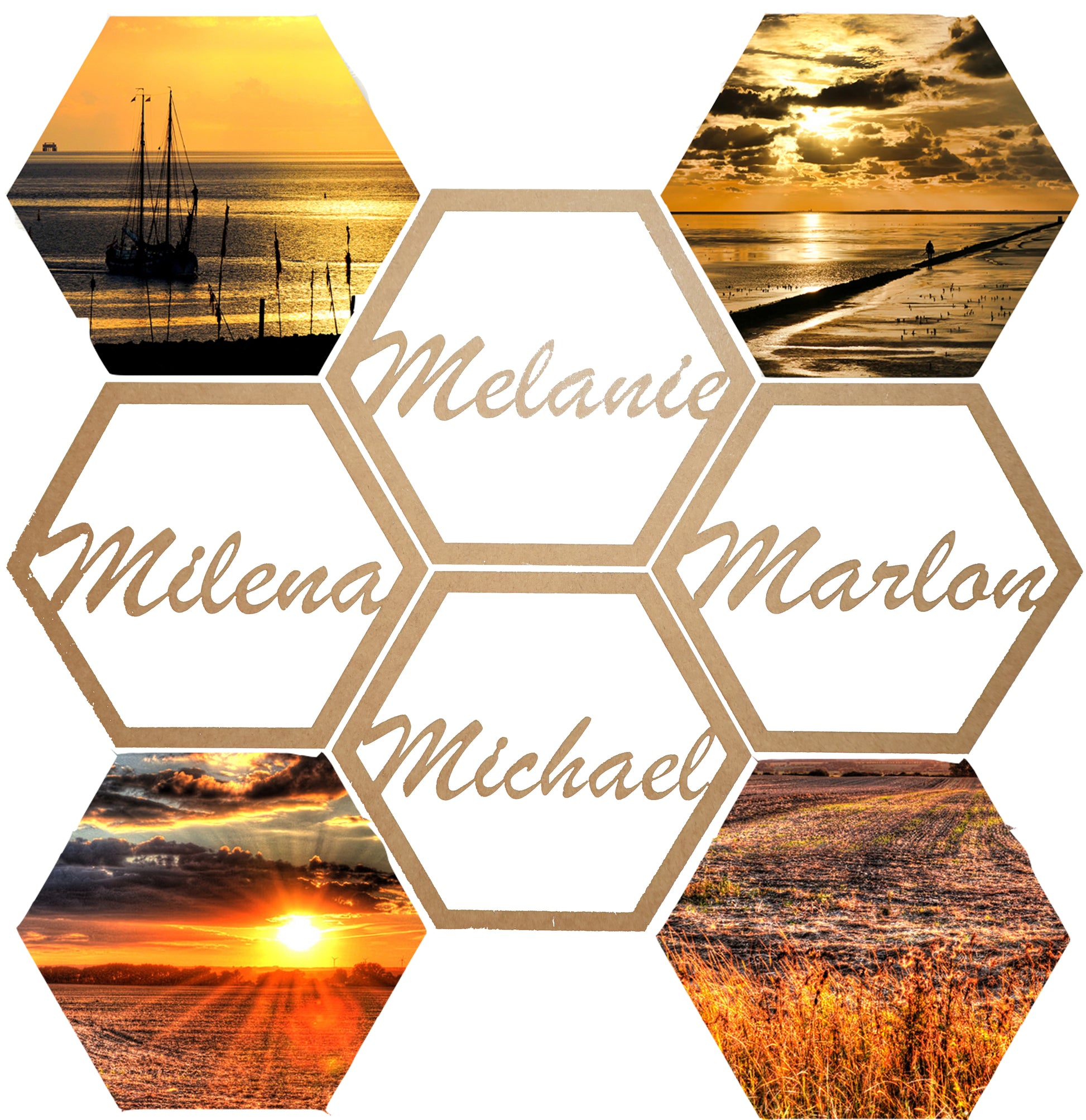 - Individuell Gestaltbar: Jedes Set besteht aus vier Hexagonen, die mit den Vornamen Ihrer Wahl personalisiert werden können. Geben Sie die Namen einfach bei der Bestellung an, und wir kümmern uns um den Rest.