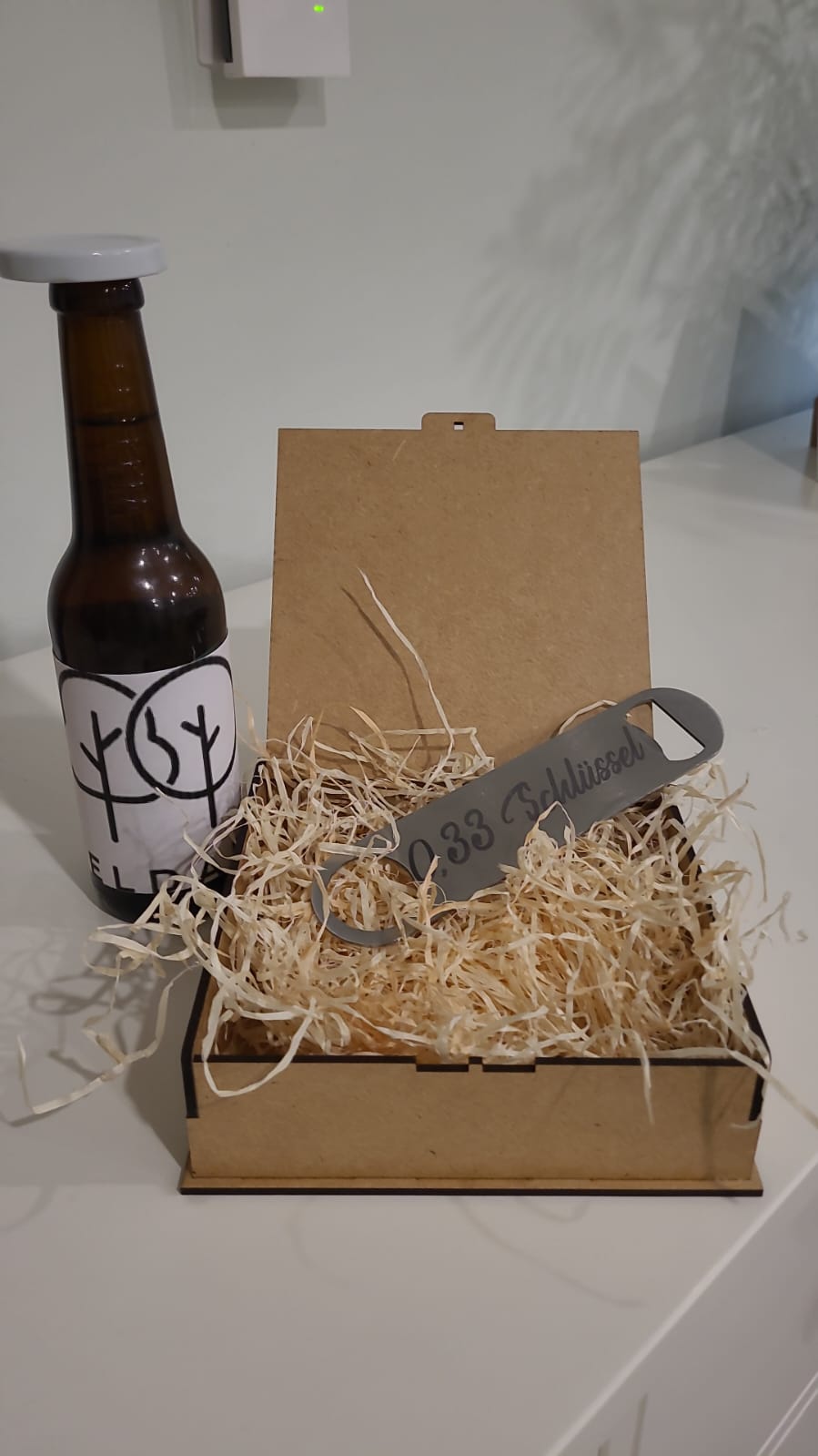 Ergonomisches Design: Der Flaschenöffner liegt gut in der Hand und verbindet praktische Anwendbarkeit mit ästhetischem Aussehen.
